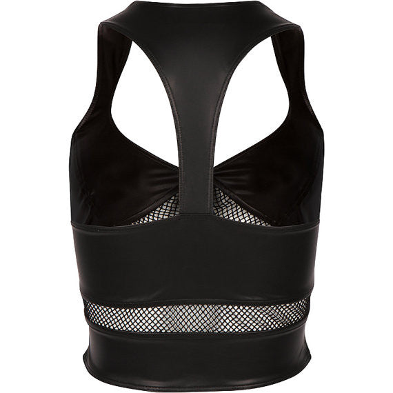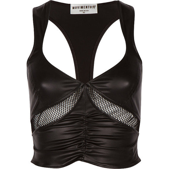 The "Gattina" Bustier combines Lycra-stretch vegan leatherette with ruched bust, accent mesh décolletage, and racer-back support to keep you feeling secure and sexy. Style it with the "Sadina" legging for maximum sass at your pilates class, then shift to eveningwear with your favorite skinnies and statement heels for an unforgettable girls' night out. You deserve more than a basic sports bra.